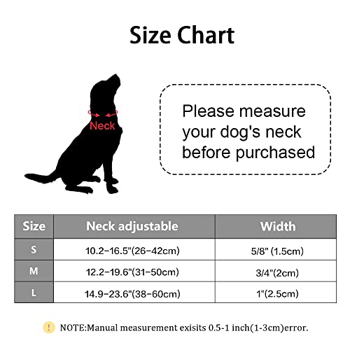 (NOTE: Please take your dogs neck measurements to ensure you purchase the correct size, two fingers should slide easily beneath the dog collars.)