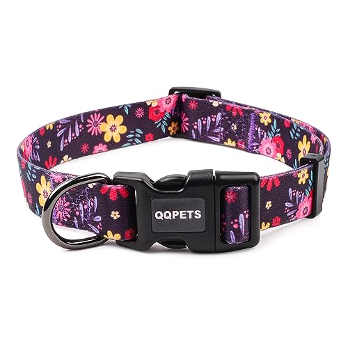 QQPETS Adjustable Soft Dog Collar: Print Flower Pink Multicolor Cute Patterns for XS Small Medium Large Pet Girl Boy Puppy Walking Running Training (S, Elegant Purple) $8.54