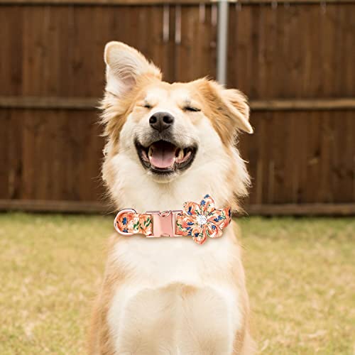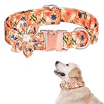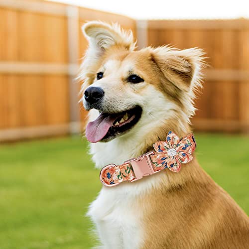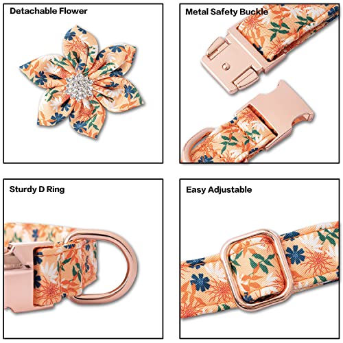 Home Pet Supplies Collars TDTOK Girl Dog Collar for Small Medium Large Dogs, Cute Dog Collar with Detachable Flower Safety Metal Buckle Adjustable Floral Pattern Soft Comfy Cotton Dog Collars, Fit Necks 10.2-23.6’’ (M, Orange)