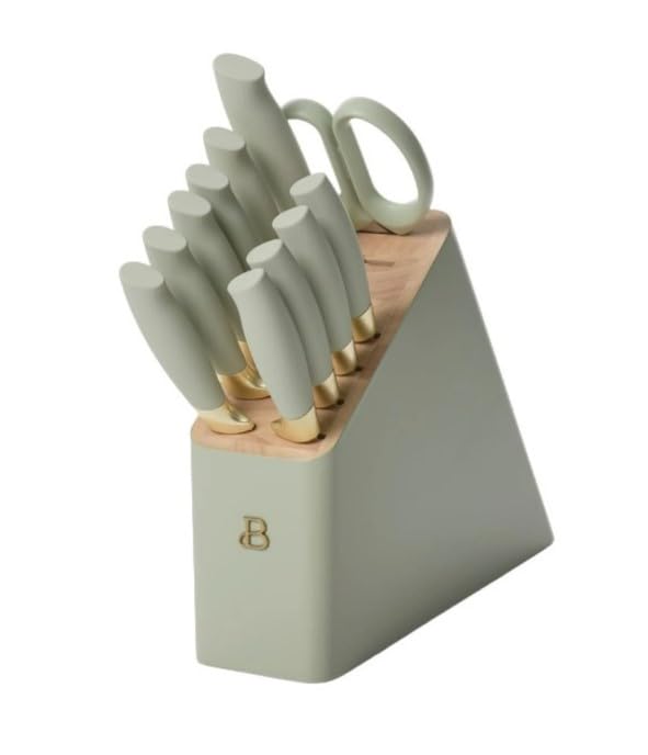 B͏e͏a͏u͏t͏i͏f͏u͏l 12pc Sage Green Stainless Steel Knife Block Set Soft-Grip Handles by Drew Barrymore $85.00