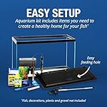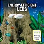 GLASS AQUARIUM KIT: Glass aquarium with low-profile hinged hood houses energy efficient white LEDs to create a natural underwater shimmer effect