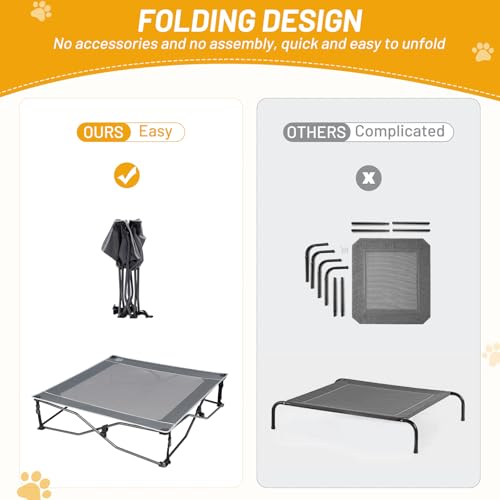 PORTABLE DESIGN: The outdoor dog bed features a folding and portable design that means no assembly required and 10-second setup, making it convenient for transport and storage