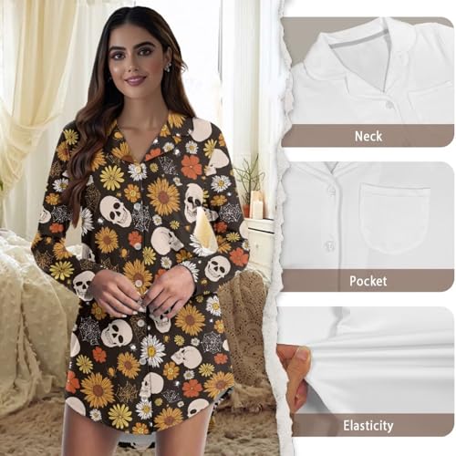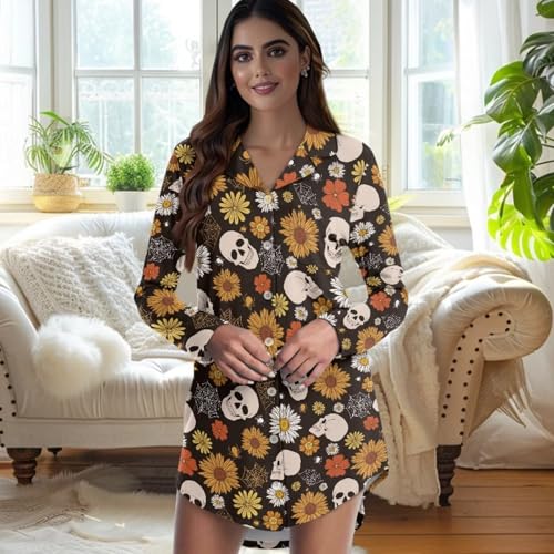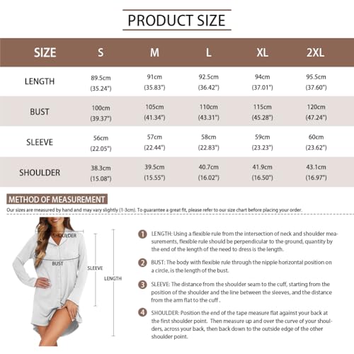 Nightgown for Women Button Down Pajama Dress Short Long Sleeve Sleepwear Boyfriend Nightshirt