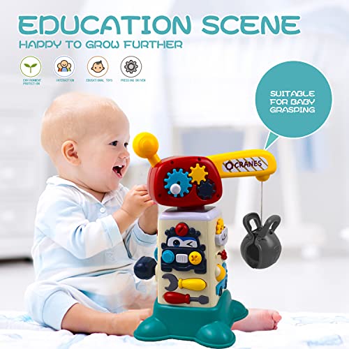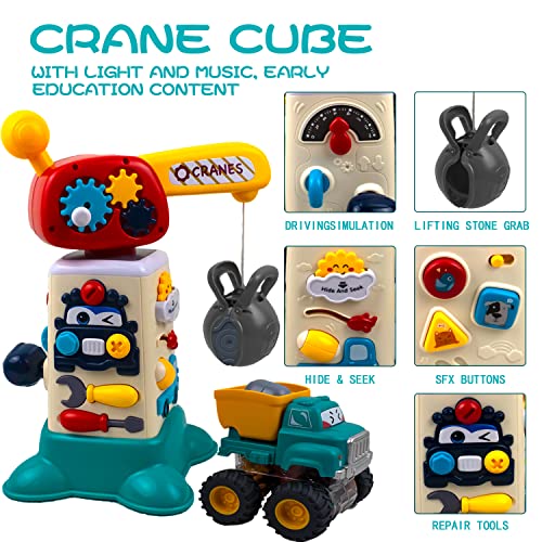 Toddler Crane Electronic Construction Toys 3 Sets,LED Multi-Mode Baby Music Activity Cube with 2 Inertia Push Away Vehicles,Fun Early Years Toys for Boys and Girls Ages 18m+