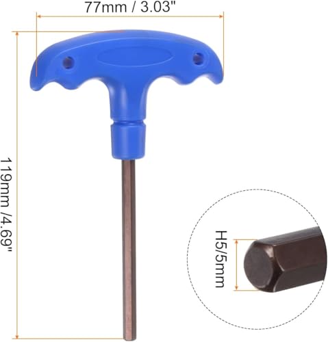 【Size】 : H5/5mm t-shape hex key wrench, 4.69-inch(119mm) length, 3.03-inch(77mm) width.