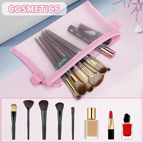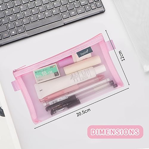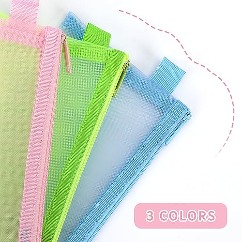 Toplive 3 Pieces Pencil Case Set, Clear Exam Pencil Pouch, Nylon Mesh Zipper Pen Case Bag, Makeup Bag for Women, Portable Office School Stationery Storage Pouch for Students Adults, Green Pink Blue