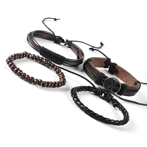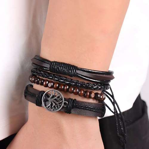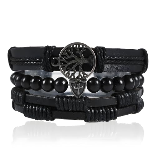 The Men’s Four Layer Braided Leather Tree of Life Breads Bracelet, is a timeless embodiment of style, meaning, and craftsmanship.