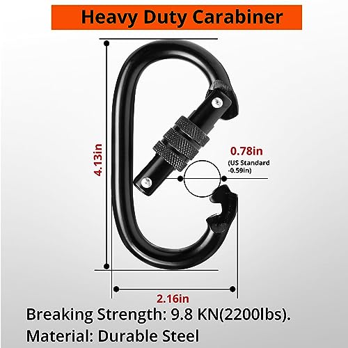 - 【METAL LOCKING CARABINER】Just attach fall protection tree strap to a tree then click the heavy duty carabiner that is included to your safety harness. The D-ring of the tree stand safety harness is large enough to connect various safety belts The maximum tensile force is 22540 N and it break With a strength of 5070 pounds,it provides great “relief”.