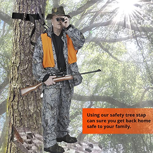 - 【STRONG TREE STAND HARNESS】The hunter safety system is composed of a sturdy polyester flat belt and metal press buckle, which can withstand a weight of up to 1780lbs. has good strength and toughness.