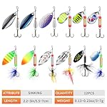 SPINNER FISHING LURES SET: This 12pcs spinner baits contains 2 different sizes of fishing lures 2.2”- 3”. Heavy weighted body: 0.13 – 0.23oz designed for catching more large fish. Ambitious anglers can choose the most suitable lure according to different sizes of fish species and different waters