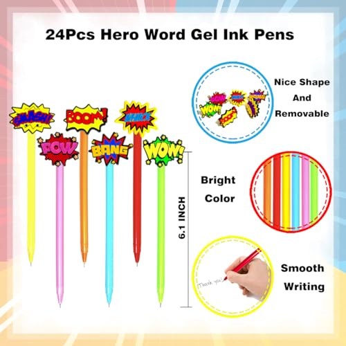 Hero Theme Pens Set Include-You will get 24 pieces cool hero word theme gel ink pens,6 different styles, 4 of each style, sufficient quantity can meet your daily use and replacement, can be shared with your friends and classmates