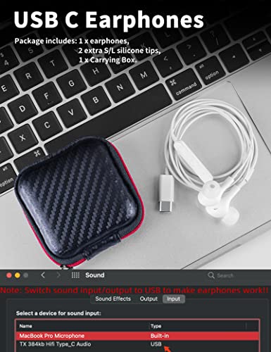 Secure Fit and Stereo Sound: In-ear design earbuds block the noise outside to achieve outstanding sound quality. The shape of the earbuds is unique and ergonomic, makes it a good-looking accessories for your phone or other usb-c devices, It will fits-nicely for long time comfortable wearing, Comes with 2 extra silicone tips S/L for your choices, NOTE: If the earbuds has No Sound when using on mobile, go to Setting-Developer Options, find Disable USB audio routing, Close this option
