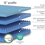 • 2 Memory Foam Layers: 5 inches of foam padding, comprised of 2 inches of gel memory foam atop 3 inches of comfort memory foam, provides advanced cooling technology for better body temperature regulation as well as pressure-relieving comfort