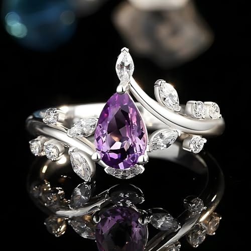 This exquisite ring is crafted from 925 sterling silver, exuding a timeless elegance. At its center, a stunning teardrop-shaped purple crystal is set, adding a touch of regal beauty. Surrounding the main stone is a delicate vine design, with zircon stones representing leaves. The combination of these elements creates a unique and enchanting look. The entire surface of the ring sparkles, catching the light with every movement. Whether for a special occasion or as an everyday accessory, this ring is sure to turn heads and become a cherished piece in your jewelry collection.