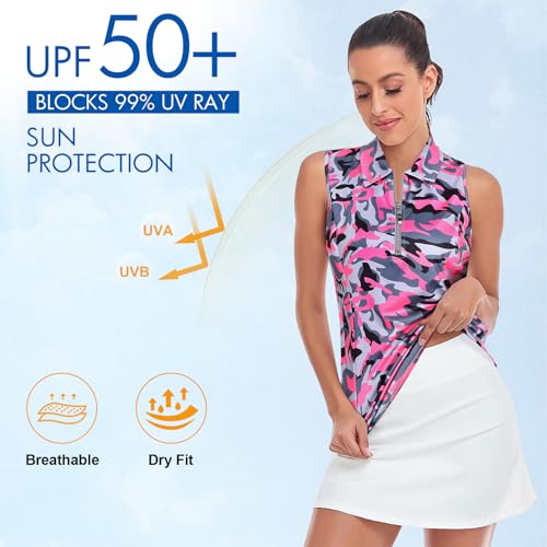 Viracy Womens Sleeveless Golf Polo Shirts Zip Up Sun Protection Work Out Tank Tops Lightweight Fast Dry for Tennis, Casual