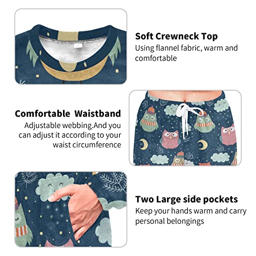 Vnurnrn Night Owls Moon Pajama Sets Long Sleeves Button-Down Sleepwear for Women Men