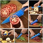 Wanbasion Blue Professional Kitchen Knife Chef Set, Stainless Steel, Dishwasher Safe with Sheathes