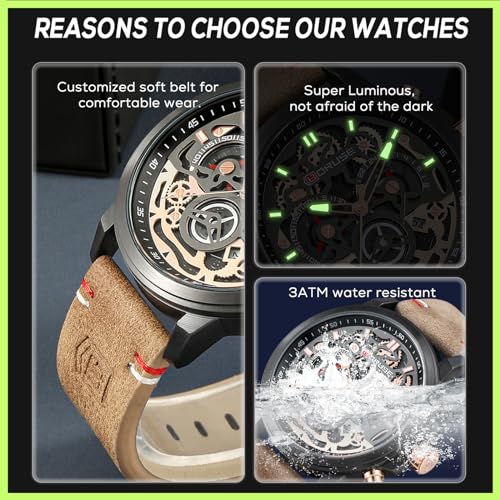 Be the first to review “Watches for Men Business Chronograph Big Face Skeleton Quartz Watch Dress Classic Luminous Analog Calendar Waterproof Wristwatch for Leather Strap” Cancel reply