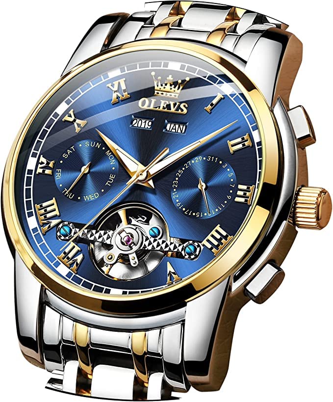 OLEVS Automatic Self Winding Men's Watches Date Day Calendar Display Stainless Steel Watches Skeleton Movement Tourbillon No Battery Waterproof Watches for Man $108.80