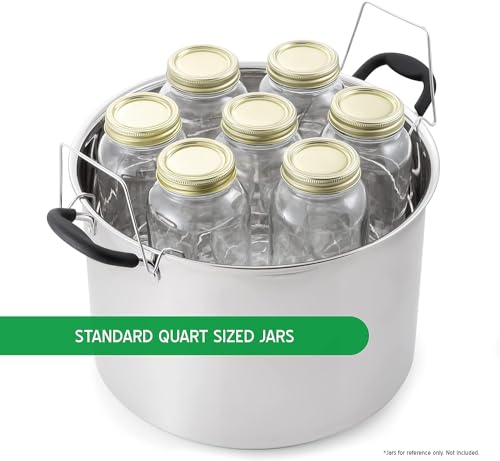 EASY-LIFT JAR RACK: The heavy-duty rack is designed to hold (7) 1-quart, (9) 1-pint or (12) half-pint jars. Efficiently and safely preserve your favorite foods with our high-quality 21.5qt stainless steel canner.