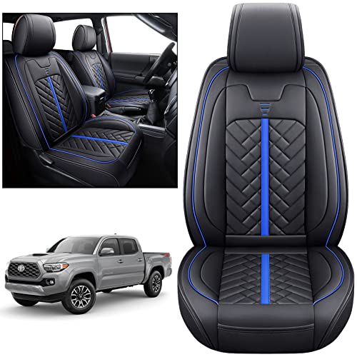 Tomatoman Toyota Tacoma Car Seat Covers Tailor Fit for Truck 2005-2022 2023 2024 2025 Access Double Crew Cab TRD Pro Trail Edition Off-Road Waterproof Leather Cushions(2PCS Front/Black-Blue) $119.99