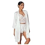 Be the first to review “WDIRARA Women’ Silk Satin Pajamas Set 4pcs Lingerie Floral Lace Cami Sleepwear with Robe” Cancel reply
