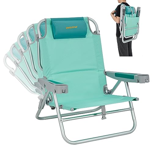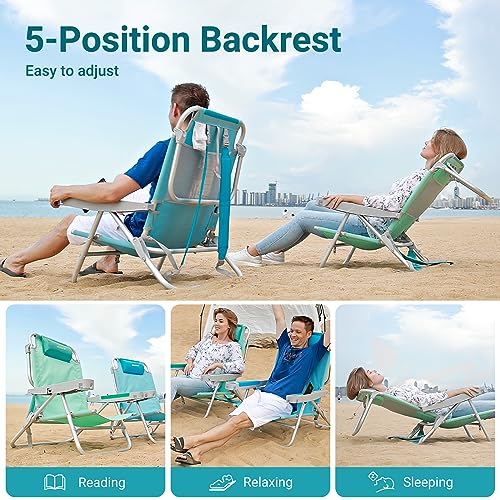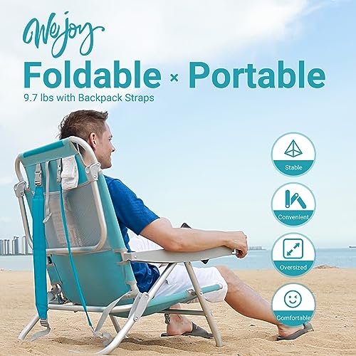 #WEJOY 17 in Oversized Beach Chair, 5 Adjustable Reclining Folding Backpack Beach Chairs for Adult, High Back Seat Chair with Bottle Opener,Handle Strap,Phone&Cup Holder for Camping Sand,300 Lbs