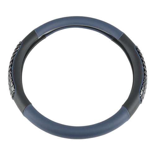 West Llama Nappa Leather Car Steering Wheel Cover Gel Massage,Cool in Summer,Universal 15 inch(Blue+Black-Standard Size)