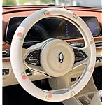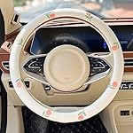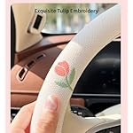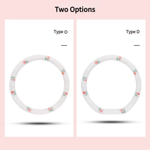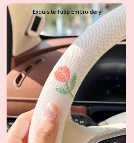 Wheel Cover Flax Microfiber Steering Wheel Covers for Women Fit 15 inch Car Cute Bow Tie Anti-Slip Breathable Absorbing Sweat Cover (Type-O-Tulip)