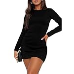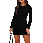 WIHOLL Women’s Long Sleeve Boat Neck Mini Dress Slim Fit Party Club Bodycon Dresses