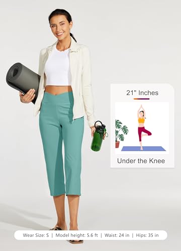 Willit Women’s Yoga Capris Pants High Waist Leggings Crossover Straight Leg Athletic Exercise Workout Crop Capris 21″