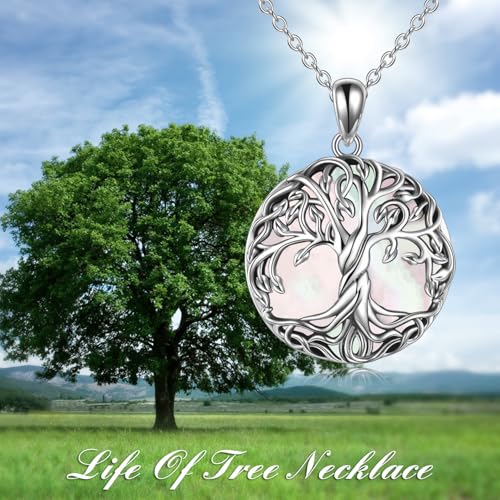 WINNICACA Tree of Life Necklace Sterling Silver Abalone Shell/Moonstone/Malachite/Tigers Eye/Turquoise Celtic Family Tree Pendant Anniversary Birthday Jewelry Christmas Gifts for Mom Her Wife