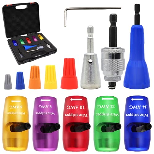 Wire Stripper for Drill,Wire Stripper for 14-12-10-8-6 AWG,Wire Twisting Tool for Drill,Electric Wire Stripper Tool Set,Cable Stripping and Connector