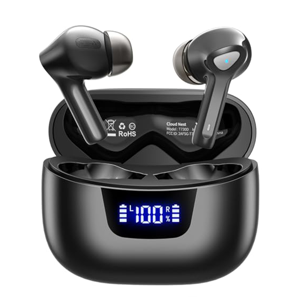 - Hi-Fi Sound Quality and Crystal-clear Call: The noise canceling earbuds wireless incorporate 14.2mm double-layer diaphragm drivers, delivering sound with strong bass, clear mids, and bright treble. Benefit from Bluetooth 5.3, the wireless headphones bluetooth establishes a consistent connection to your device within a 30ft range. Besides, the built-in microphones let your voice be transmitted with clarity and precision. Experience hassle free conversations, free from ambient distractions.