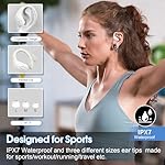 Ergonomic Sports Design and IPX7 Waterproof: The Wireless earbuds sport features ear hooks made of an innovative TPU (elastic) material that not only solves the problem of bluetooth earphones falling off when running, but is also comfortable to wear and anti-allergic. The earphones wireless bluetooth are equipped with nano-coated waterproof material, which can effectively prevent splash damage caused by sweat and raindrops, especially for jogging, gym, yoga and more sports.