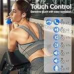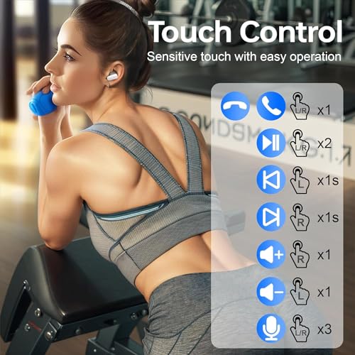 【Intelligent Touch Control and IPX7 Sweatproof】This headphones boast a highly responsive touch interface, minimizing pressure on your ears when interacting with various functions. With intuitive touch controls, you can switch music, pause/play music, adjust the volume, answer calls and activate voice assistants. This means no more fumbling for your phone or dealing with physical buttons, just effortless, seamless control at your fingertips. And featuring an IPX7-rated sweatproof function, our wireless earphones are protected against damage from sweat and light rain. Perfect for sports and workouts.