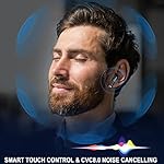 Easy touch control and multiple mode: Each ear buds a built-in sensitive touch control key, you can touch it directly to manage music or calls, adjusting volume, answering/ending calls, and enabling voice assistance…All operations are at your fingertips without taking out your phone. Also, wireless headphones can not only work together for stereo sound but also work alone. Give one ear phone to your partner, and share a song or movie with him/her together. Perfect for safe driving/dating etc..