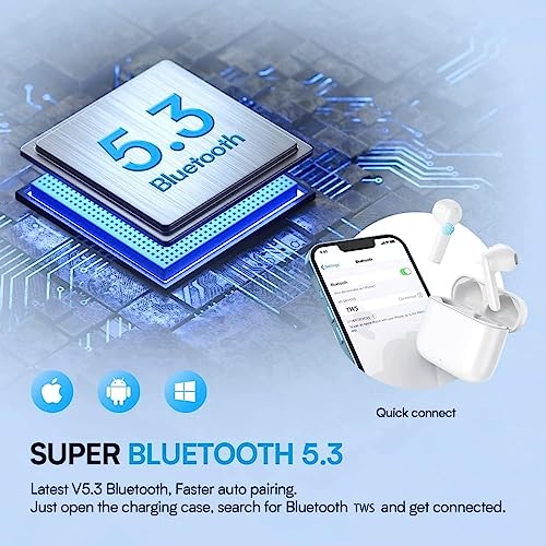 Wireless Earbuds Bluetooth 5.3 Headphones, Long Playing time , Touch Control Noise Reduction Headphones ,IP7 Waterproof Mini Ear Buds Mic In-Ear Headset ,Compatible with IOS , Android Smartphone $6.99