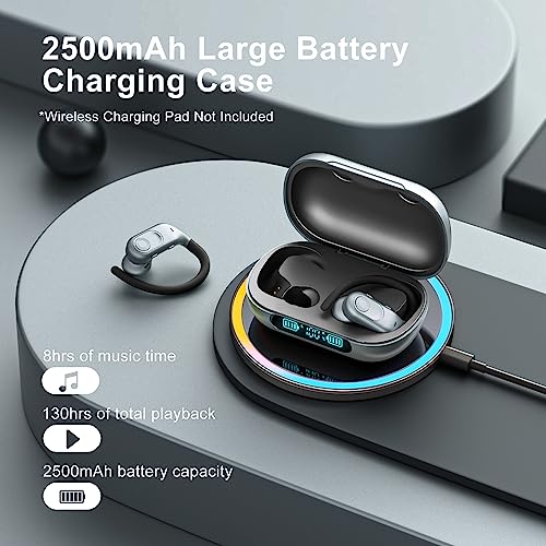 Wireless Earbuds Bluetooth Headphones 130Hrs Playtime with 2500mAh Wireless Charging Case LED Diaplay Hi-Fi Waterproof Over Ear Earphones for Sports Running Workout Gaming