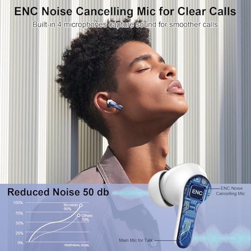 Hassle-free HD Clear Calls: The noise cancelling earbuds are perfect for phone calls thanks to the 4 ENC Call Noise Cancelling Microphones, the ENC algorithm retains the clarity of the call and reduces environmental noise. AOTONOK wireless headphones bluetooth makes your voice sound clearer and the other person hear you better during calls or videos. Convenient for your work and life, communication without barriers. Meanwhile three sizes of eartips(S/M/L) are available for you to wear and choose, the more snug the wearing state, the more obvious the sound isolation effect.