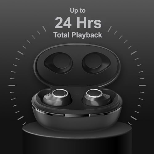 ⚡Black Round Style of Wireless V5 Bluetooth Earbuds Compatible with Samsung Galaxy A14 5G with charging case for In Ear Headphones. (V5.0)