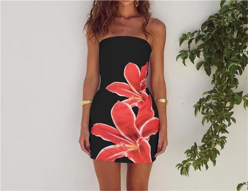 Women Sexy Strapless Floral Pattern Bodycon Tube Mini Dress Summer Skinny Sleeveless Backless Bandeau Tube Dress