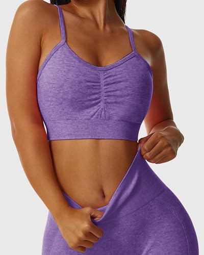 Womens 2 Piece Seamless Workout Sets Butt Lifting Legging with Padded Stretchy Sports Bra Jogging Yoga Gym Outfits