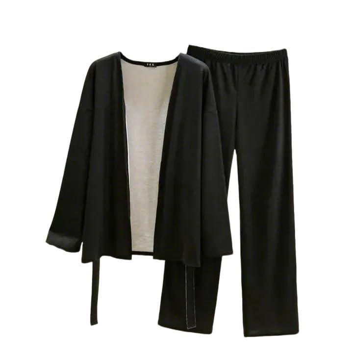 Solid Color Cardigans Loungewear for Women Casual Drop Shoulder Comfy Nightwear Slouchy Winter Pajamas Suit 2024 $8.99