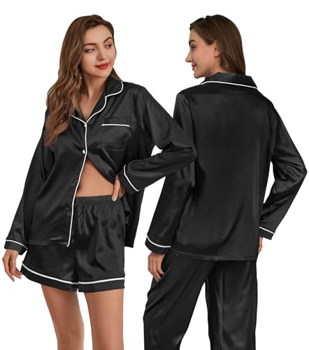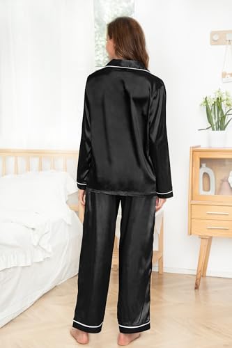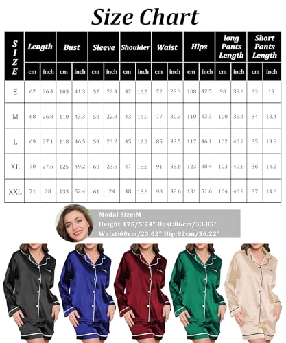 Womens Silk Satin Pajamas Sets 6pcs Long Sleeve Pj Set Soft Button Down Sleepwear Loungewear with Eye Mask & Silk Scrunchies