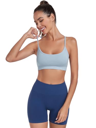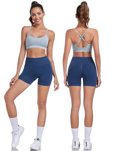 Workout Sets for Women 2 Piece Outfits High Waisted Yoga Shorts with Adjustable Strappy Sports Bra Gym Sets