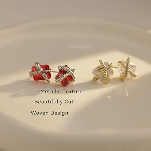 Woven Sugar Cube Studs Earrings for Women,18k Gold Plated Earrings