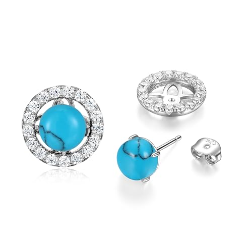 7mm Round Genuine Rose Quartz, Turquoise or Jade Removable Jacket Halo Stud Earrings for Women, 925 Sterling Silver Healing Gemstone Studs Earrings for Women $57.99