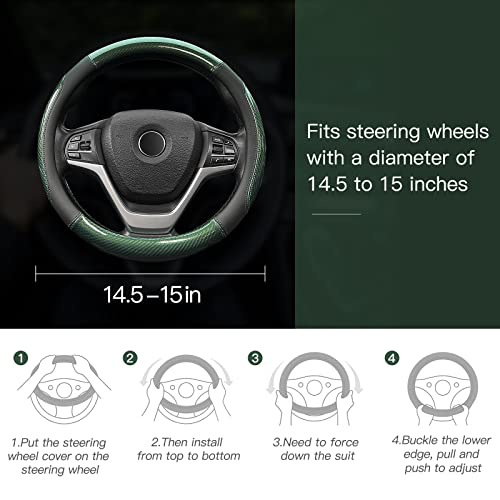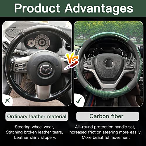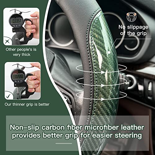 XCBYT Car Steering Wheel Cover Green – Universal Fit 14.5-15 Inch Carbon Fiber Steering Wheel Cover Sport Style with Anti-Slip Microfiber Leather Grip Steeringwheel Accessories for Women Man
