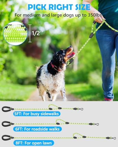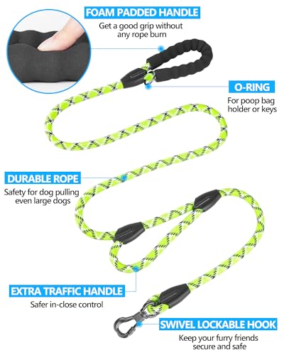 XiaZ 5FT 6FT 8FT Heavy Duty Dog Leash with 2 Comfortable Padded Handle, Traffic Handle Dog Training Leash, Reflective Rope Dog Leash for Large Medium Dogs